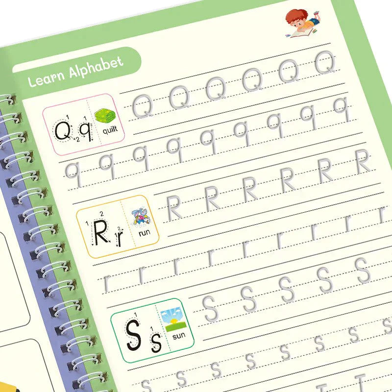Kids Magic Practice Book (4 Books + 1 Pen + 1 Grip + 10 Refill)