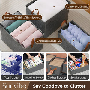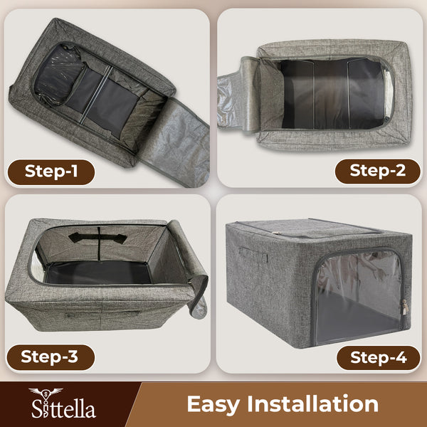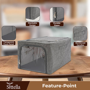 Premium Foldable Storage Box with Double Side Zipper – Closet Organizer for Clothes & More (Grey)