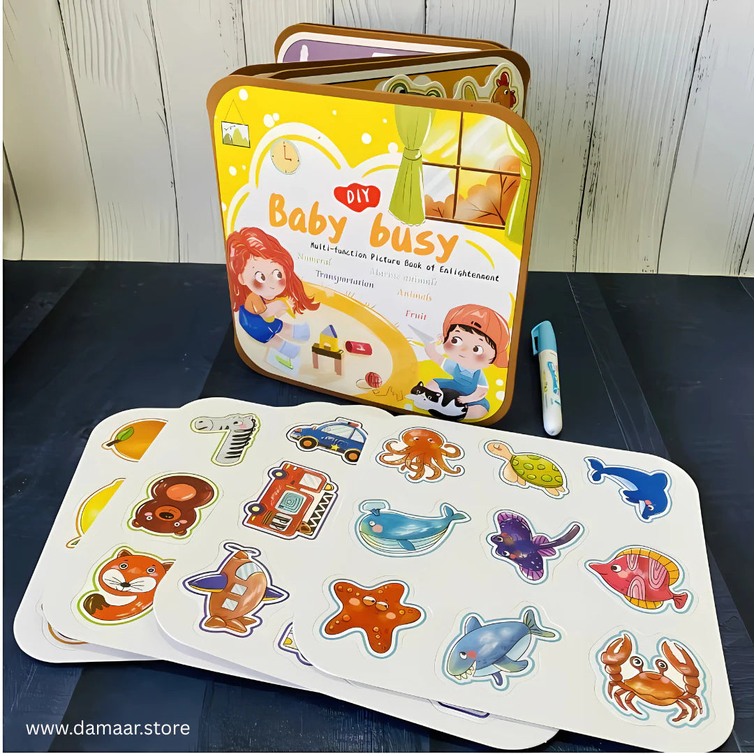 The reusable pages magically dry and reset, allowing kids to draw and play again and again. This busy book helps improve creativity, hand-eye coordination, and early learning skills while keeping children engaged for hours. Its compact and lightweight design makes it ideal for travel, school bags, and everyday play.